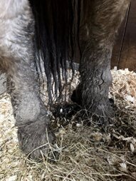 Etat générale particulièrement préoccupant : déshydratation avance, sous-nutrition marquée, sabots déformés, troubles locomoteurs sévères.